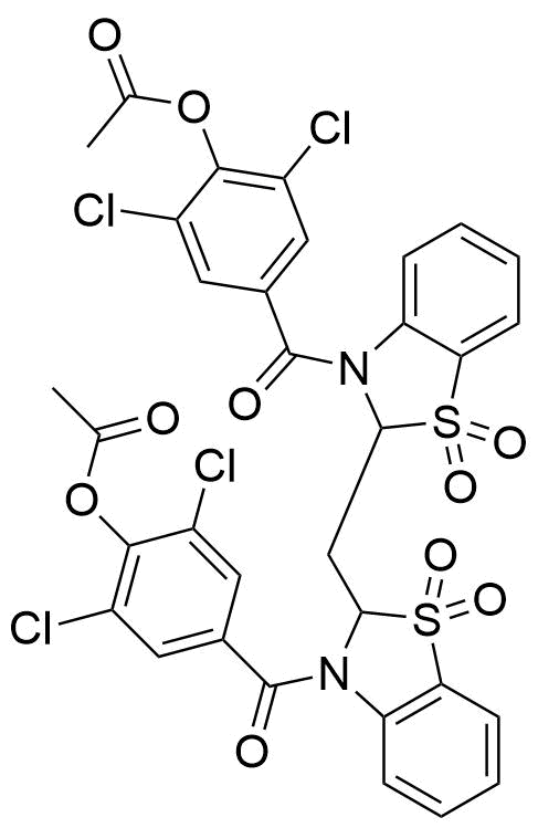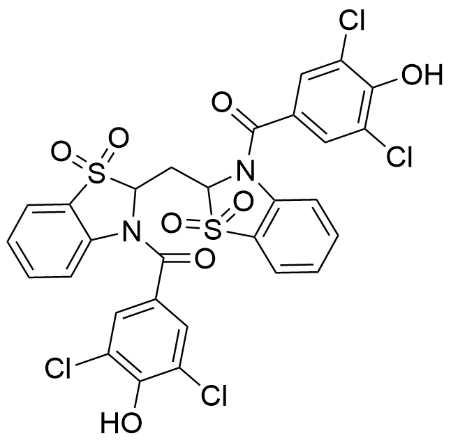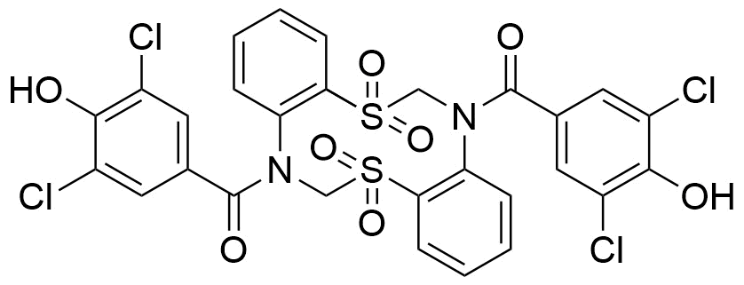 | 别名: | (5,5,12,12-tetraoxidodibenzo[d,i][1,6,3,8]dithiadiazecine-7,14(6H,13H)-diyl)bis((3,5-dichloro-4-hydroxyphenyl)methanone) |