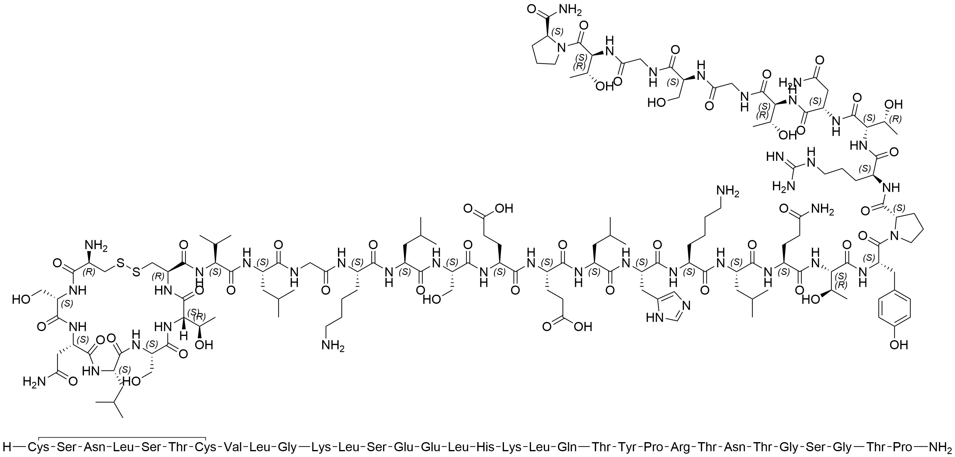 | M.F. | C147H242N44O50S2 |
