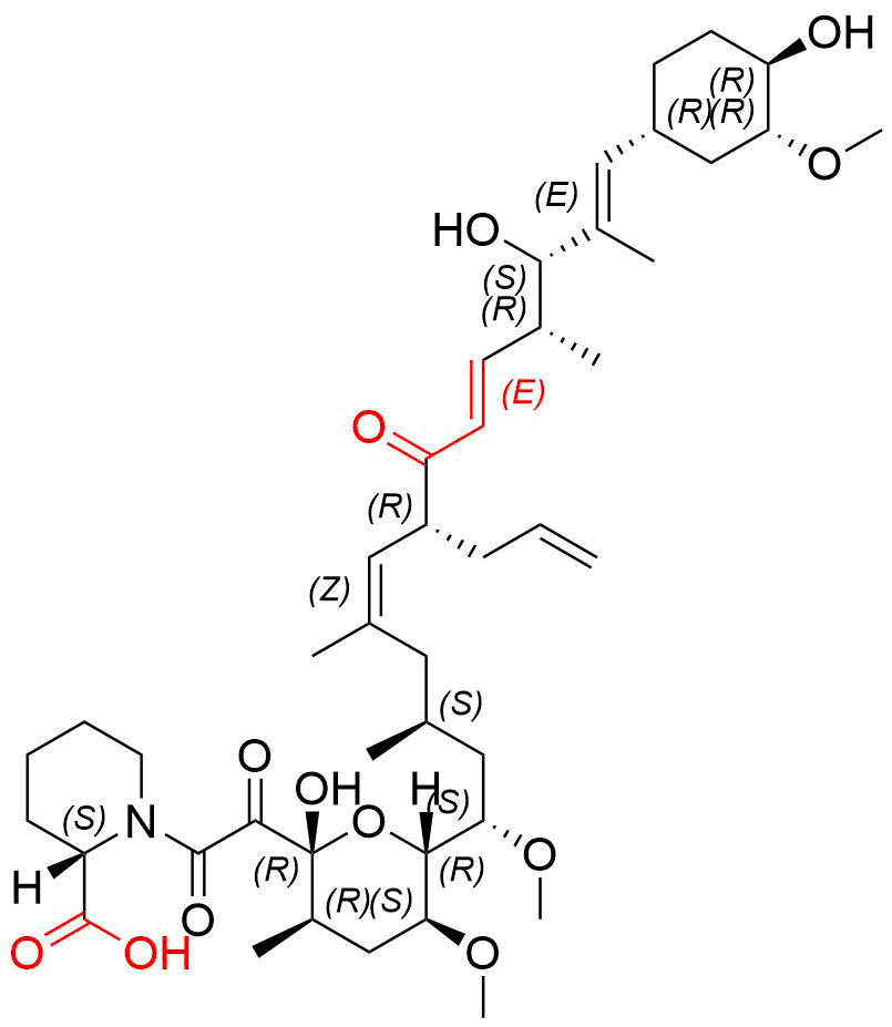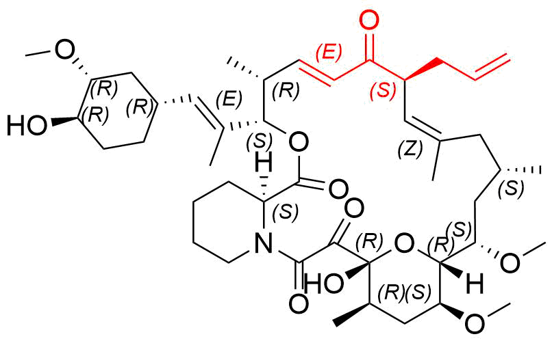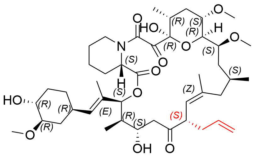 | 别名: | (3S,4R,5E,8R,9E,12S,14S,15R,16S,18R,19R,26aS)-8-allyl-19-hydroxy-3-((E)-1-((1R,3R,4R)-4-hydroxy-3-methoxycyclohexyl)prop-1-en-2-yl)-14,16-dimethoxy-4,10,12,18-tetramethyl-8,11,12,13,14,15,16,17,18,19,24,25,26,26a-tetradecahydro-3H-15,19-epoxypyrido[2,1-c][1]oxa[4]azacyclotricosine-1,7,20,21(4H,23H)-tetraone |